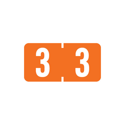Tab 1277 numeric labels feature a wrap-around orange background with a white number. The number will be visible on each side of the folder when applied. Each label is 1/2"H x 1"W before folding.