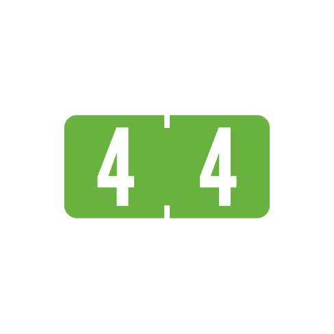Tab 1277 numeric labels feature a wrap-around green background with a white number. The number will be visible on each side of the folder when applied. Each label is 1/2"H x 1"W before folding.