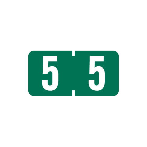 Tab 1277 numeric labels feature a wrap-around dark green background with a white number. The number will be visible on each side of the folder when applied. Each label is 1/2"H x 1"W before folding.