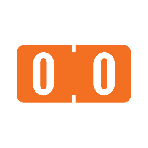 Tab 1280 numeric labels feature a wrap-around orange background with a white number. The number will be visible on each side of the folder when applied. Each label is 1/2"H x 1"W before folding.