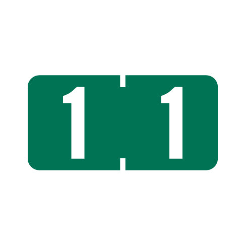 Tab 1280 numeric labels feature a wrap-around green background with a white number. The number will be visible on each side of the folder when applied. Each label is 1/2"H x 1"W before folding.
