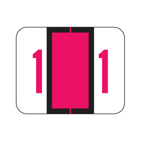 Tab 1282 numeric labels feature a wrap-around red bar outlined in black with a red number on a white background. The number will be visible on each side of the folder when applied. Each label is 1"H x 1-1/4"W before folding.