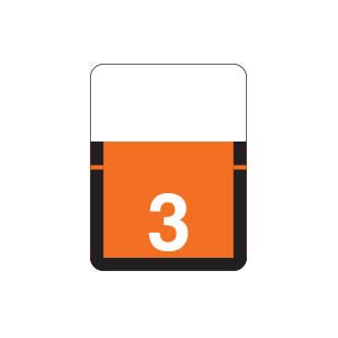 Tab 1306 numeric labels feature a wrap-around partial orange background outlined in black with a white number. Each label is 1"H x 3/4"W before folding.