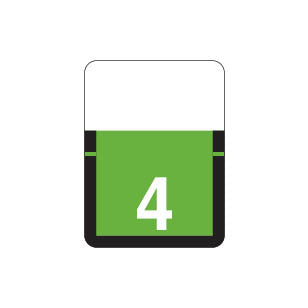 Tab 1306 numeric labels feature a wrap-around partial green background outlined in black with a white number. Each label is 1"H x 3/4"W before folding.