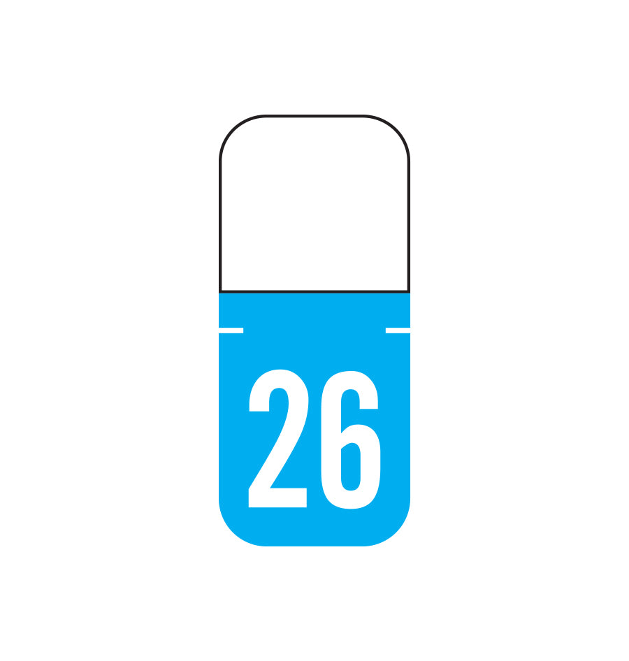 Tab 1308 Top Tab Year 26 Labels, 1-1/8" X 1/2" Vinyl- Roll of 500
