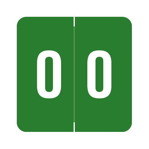 Acme numeric labels feature a wrap-around green background with a white number. The number will be visible on each side of the folder when applied. Each label is 1-1/2" H x 1-1/2" W before folding.