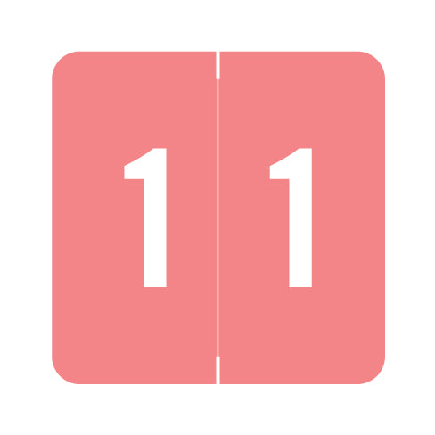 Acme numeric labels feature a wrap-around pink background with a white number. The number will be visible on each side of the folder when applied. Each label is 1-1/2" H x 1-1/2" W before folding.