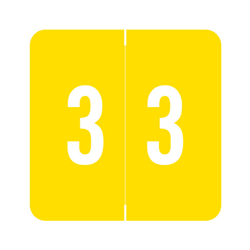 Acme numeric labels feature a wrap-around yellow background with a white number. The number will be visible on each side of the folder when applied. Each label is 1-1/2" H x 1-1/2" W before folding.
