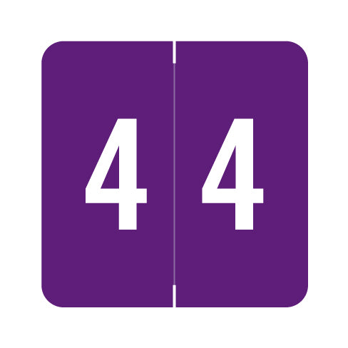 Acme numeric labels feature a wrap-around purple background with a white number. The number will be visible on each side of the folder when applied. Each label is 1-1/2" H x 1-1/2" W before folding.