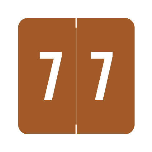 Acme numeric labels feature a wrap-around brown background with a white number. The number will be visible on each side of the folder when applied. Each label is 1-1/2" H x 1-1/2" W before folding.