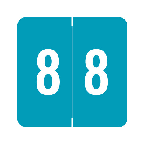Acme numeric labels feature a wrap-around light blue background with a white number. The number will be visible on each side of the folder when applied. Each label is 1-1/2" H x 1-1/2" W before folding.