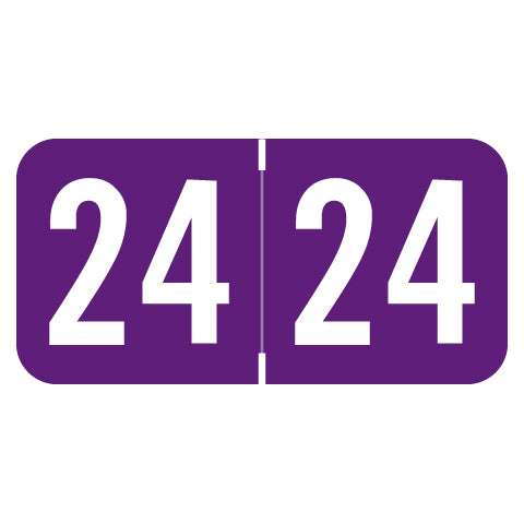 Ames year labels have a wrap-around purple background with a solid white year. The year will be visible on each side of the folder when applied. Each label is 3/4" H x 1-1/2" W before folding.