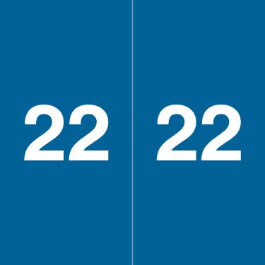 Ames 22 year labels have a wrap-around blue background with a solid white year. The year will be visible on each side of the folder when applied. Each label is 1-7/8" wide and 1-7/8" high, before folding.