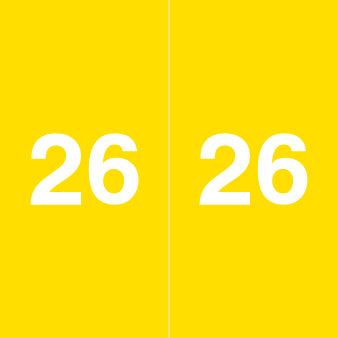 Ames year labels have a wrap-around yellow background with a white year. The year will be visible on each side of the folder when applied. Each label is 1-7/8" wide and 1-7/8" high, before folding.