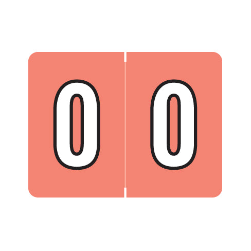 Datafile numeric labels have a wrap-around pink background with a white number outlined in black. The number will be visible on each side of the folder when applied. Each label is 15/16"H x 1-1/4"W before folding.