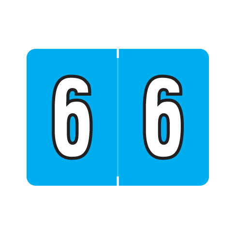 Datafile numeric labels have a wrap-around blue background with a white number outlined in black. The number will be visible on each side of the folder when applied. Each label is 15/16"H x 1-1/4"W before folding.