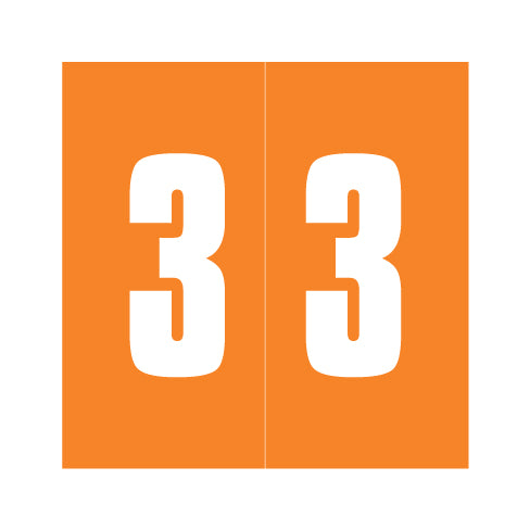 Ames numeric labels feature a wrap-around orange background with a white number. The number will be visible on each side of the folder when applied. Each label is 1-7/8"H X 1-7/8"W before folding.