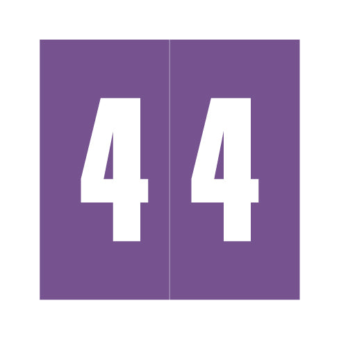 Ames numeric labels feature a wrap-around purple background with a white number. The number will be visible on each side of the folder when applied. Each label is 1-7/8"H X 1-7/8"W before folding.