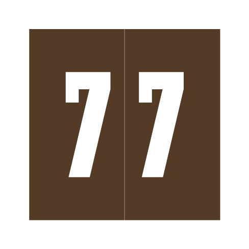 Ames numeric labels feature a wrap-around brown background with a white number. The number will be visible on each side of the folder when applied. Each label is 1-7/8"H X 1-7/8"W before folding.