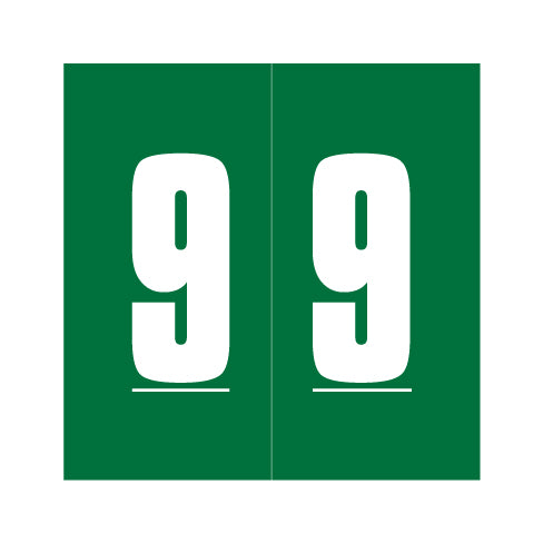 Ames numeric labels feature a wrap-around green background with a white number. The number will be visible on each side of the folder when applied. Each label is 1-7/8"H X 1-7/8"W before folding.