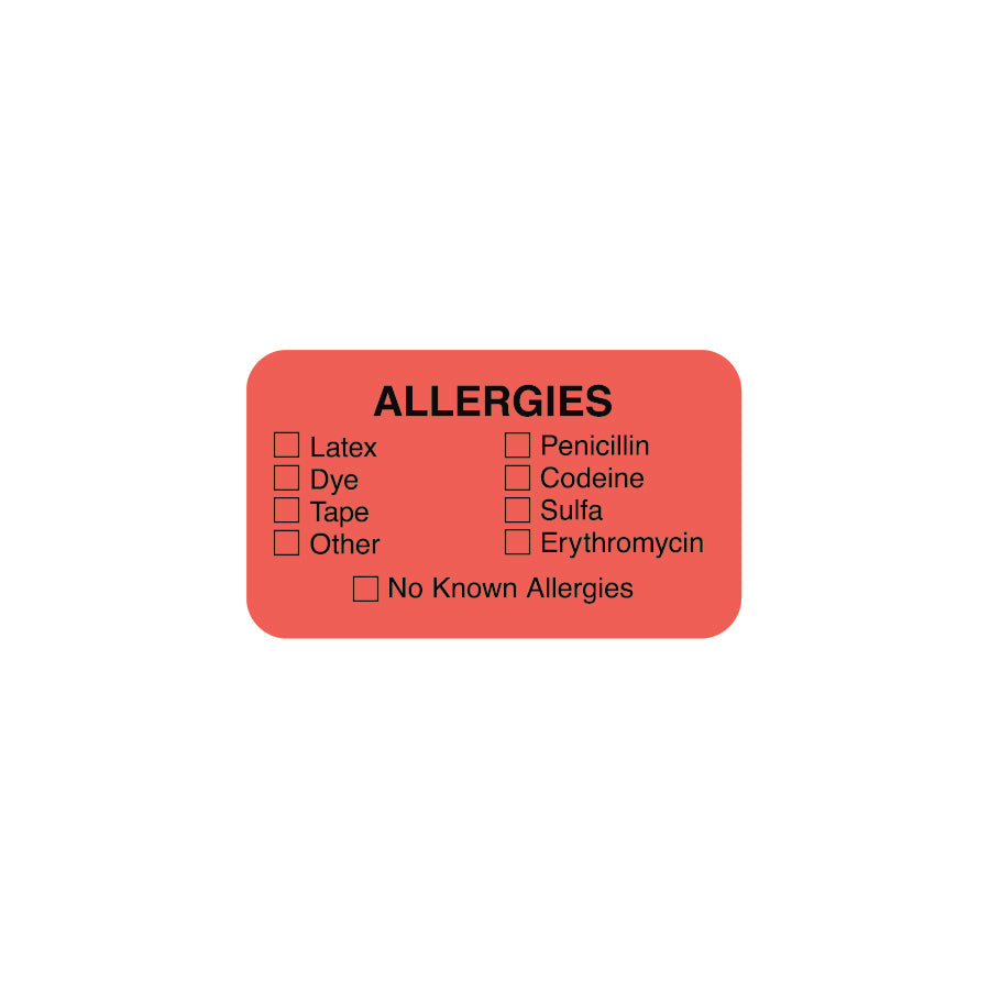 ARD1323 ALLERGIES- Fluorescent Red 1-1/2" X 7/8" (Roll of 250)