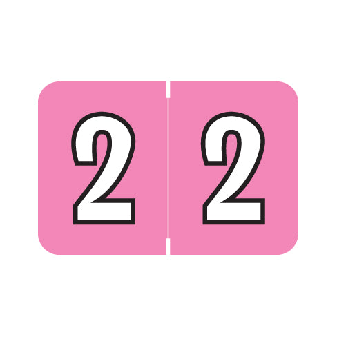 Amerifile Colorbrite numeric labels have a wrap-around pink background with a white number outlined in black. The number will be visible on each side of the folder when applied. Each label is 1"H x 1-1/2"W before folding.
