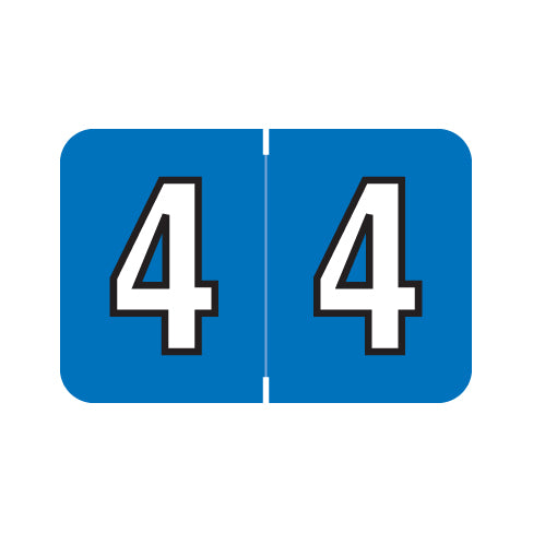 Amerifile Colorbrite numeric labels have a wrap-around dark blue background with a white number outlined in black. The number will be visible on each side of the folder when applied. Each label is 1"H x 1-1/2"W before folding.