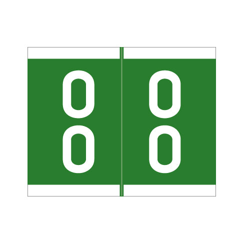 Barkley DAVM Double Digit 00-09 labels feature a wrap-around green background with white numbers. The numbers will be visible on each side of the folder when applied. Each label is 1-3/16"H x 1-1/2"W before folding.