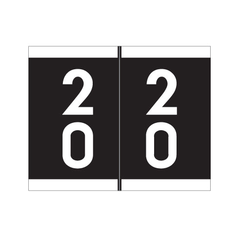 Barkley DAVM Double Digit 20-29 labels feature a wrap-around black background with white numbers. The numbers will be visible on each side of the folder when applied. Each label is 1-3/16"H x 1-1/2"W before folding.