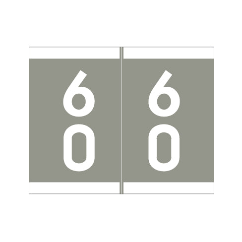 Barkley DAVM Double Digit 60-69 labels feature a wrap-around gray background with white numbers. The numbers will be visible on each side of the folder when applied. Each label is 1-3/16"H x 1-1/2"W before folding.