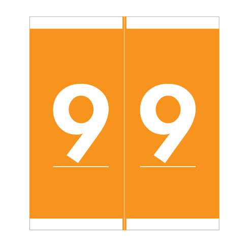 Barkley NAVM numeric labels feature a wrap-around orange background with white number. The numbers will be visible on each side of the folder when applied. Each label is 1-11/16" H x1-1/2" W before folding.