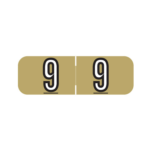 The Barkley NBAM numeric labels feature a wrap-around gold background with a white number outlined in black. The number will be visible on each side of the folder when applied. Each label is 1/2"H x 1-1/2"W before folding.