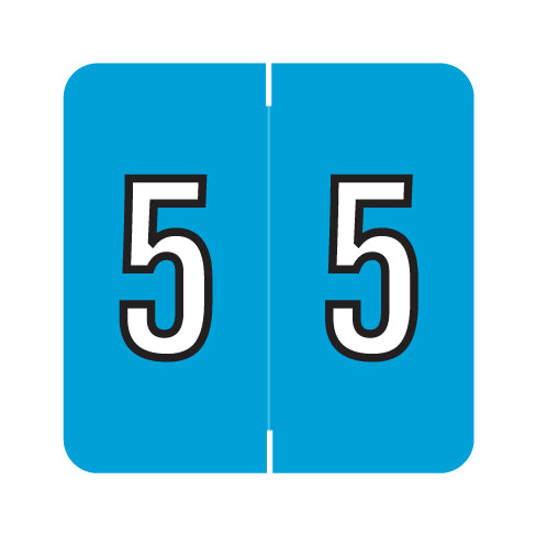 The Barkley NBRM numeric labels have a wrap-around blue background with a white number outlined in black. The number will be visible on each side of the folder when applied. Each label is 1-1/2"H x 1-1/2"W before folding.