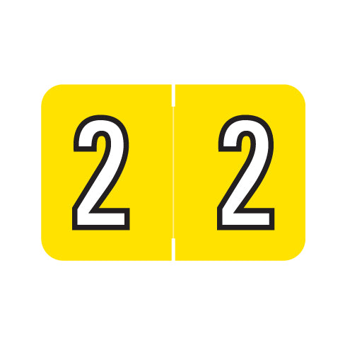 The Barkley NBKM numeric labels have a wrap-around yellow background with a white number outlined in black. The number will be visible on each side of the folder when applied. Each label is 1"H x 1-1/2"W before folding.