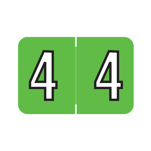 The Barkley NBKM numeric labels have a wrap-around green background with a white number outlined in black. The number will be visible on each side of the folder when applied. Each label is 1"H x 1-1/2"W before folding.