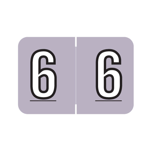 The Barkley NBKM numeric labels have a wrap-around lavender background with a white number outlined in black. The number will be visible on each side of the folder when applied. Each label is 1"H x 1-1/2"W before folding.