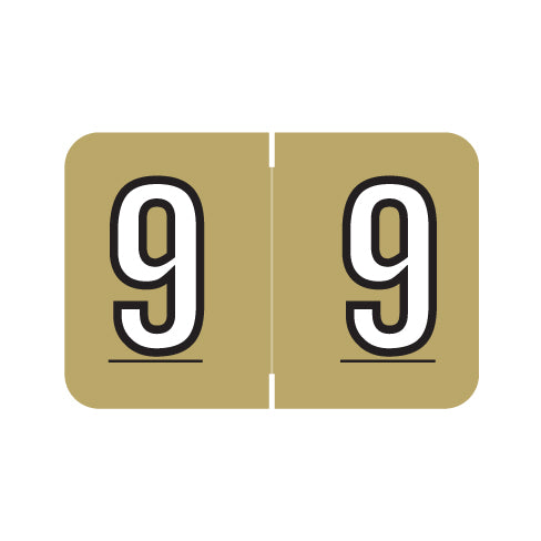 The Barkley NBKM numeric labels have a wrap-around gold background with a white number outlined in black. The number will be visible on each side of the folder when applied. Each label is 1"H x 1-1/2"W before folding.