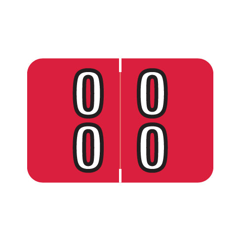Barkley DDBM 00-09 numeric labels feature a wrap-around red background with white numbers outlined in black. The numbers will be visible on each side of the folder when applied. Each label is 1"H x 1-1/2"W before folding.