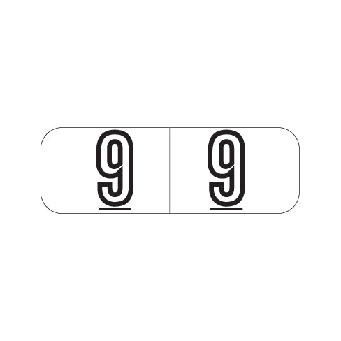 Barkley NBWM White Numeric "9" Labels 1/2" X 1-1/2" Laminated- Roll of 500