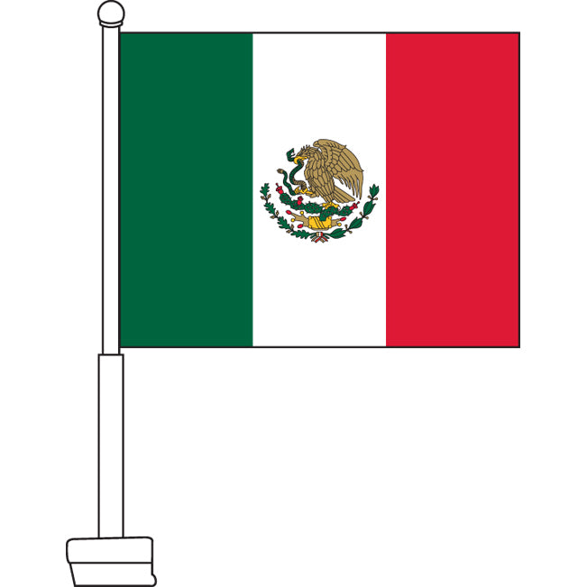 Our Mexico Car Flags feature the iconic tricolor red, white, and green design with the Mexican coat of arms displayed prominently in the middle. This flag is ideal for any individual or company looking to put their Mexican pride on display.