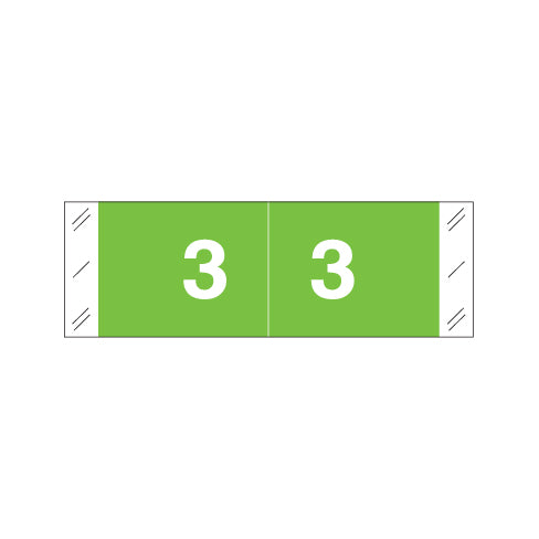 The Col'R'Tab 11850 labels feature a wrap-around green background with a white number and clear side skirts. The number will be visible on each side of the folder when applied. Each label is 1/2"H x 1-1/2"W before folding.