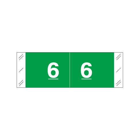 The Col'R'Tab 11850 labels feature a wrap-around dark green background with a white number and clear side skirts. The number will be visible on each side of the folder when applied. Each label is 1/2"H x 1-1/2"W before folding.