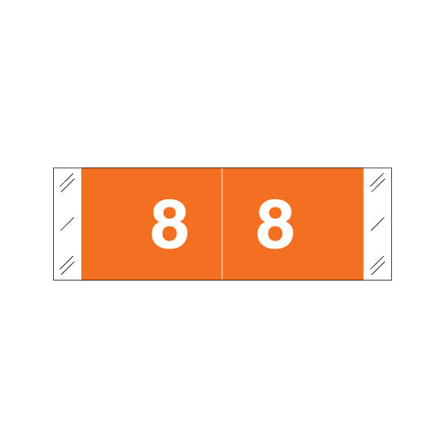 The Col'R'Tab 11850 labels feature a wrap-around orange background with a white number and clear side skirts. The number will be visible on each side of the folder when applied. Each label is 1/2"H x 1-1/2"W before folding.