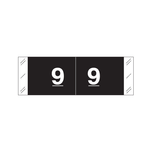 The Col'R'Tab 11850 labels feature a wrap-around black background with a white number and clear side skirts. The number will be visible on each side of the folder when applied. Each label is 1/2"H x 1-1/2"W before folding.