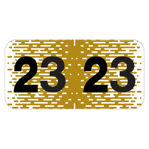 Control-O-Fax year labels have a wrap-around gold background design with a solid black year. The year will be visible on each side of the folder when applied. Each label is 1-1/2" wide and 3/4" high, before folding.