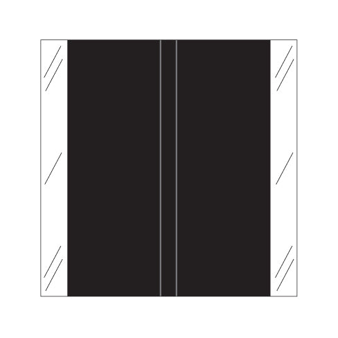 Tabbies solid black labels feature a wrap-around solid color in the center and clear skirts on the sides. Label Size is 1-1/2" W x 1-1/2" H before folding.