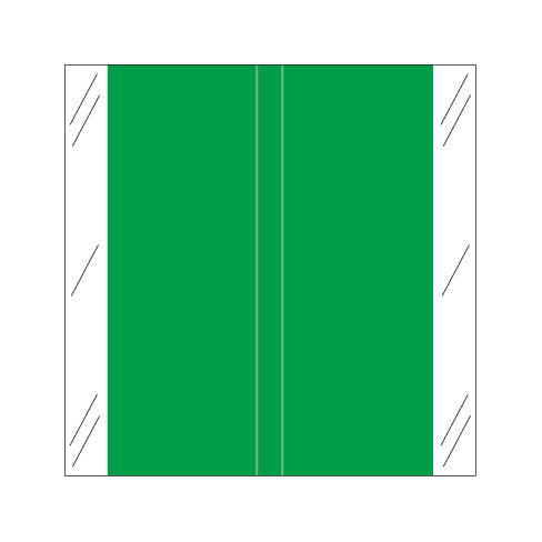 Tabbies solid dark green labels feature a wrap-around solid color in the center and clear skirts on the sides. Label Size is 1-1/2" W x 1-1/2" H before folding.