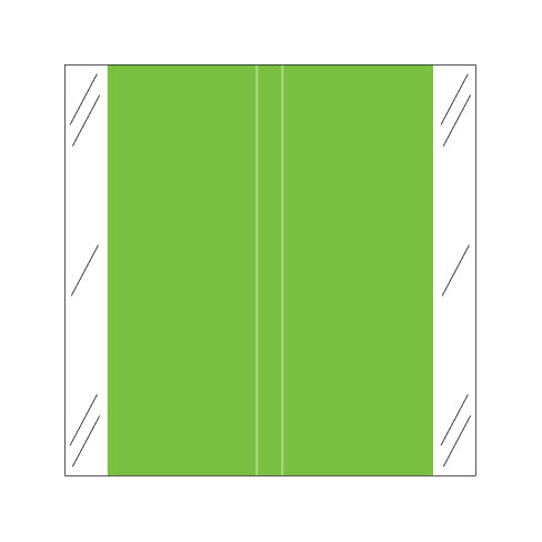 Tabbies solid light green labels feature a wrap-around solid color in the center and clear skirts on the sides. Label Size is 1-1/2" W x 1-1/2" H before folding.