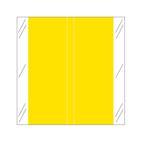 Tabbies solid yellow labels feature a wrap-around solid color in the center and clear skirts on the sides. Label Size is 1-1/2" W x 1-1/2" H before folding.