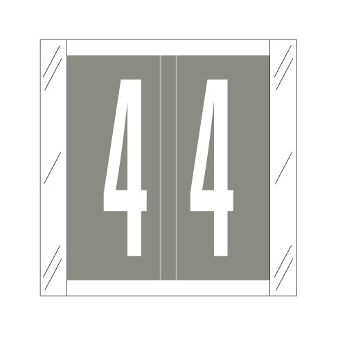 The Col'R'Tab 11500 labels feature a wrap-around gray background with a white number and clear side skirts. The number will be visible on each side of the folder when applied. Each label is 1-1/2"H x 1-1/2"W before folding.